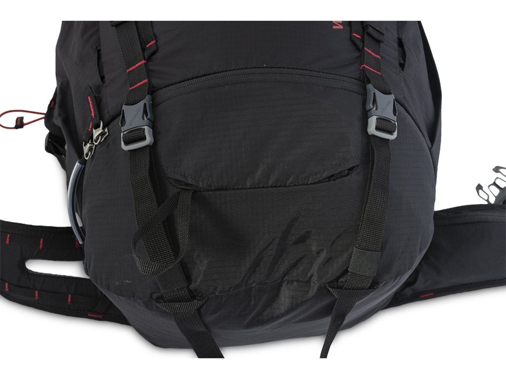 - Pár vertikálních řetízků na čele batohu s možností připevnění dodatečného vybavení.