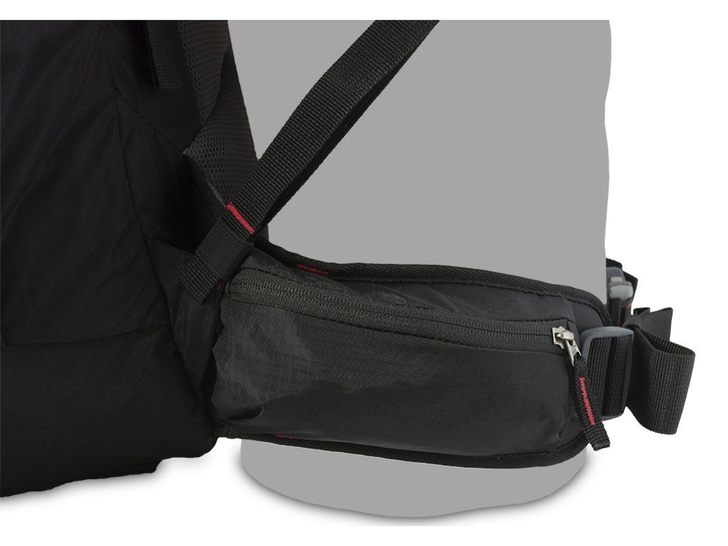 - Zipová kapsa na pravé straně bederního pásu.