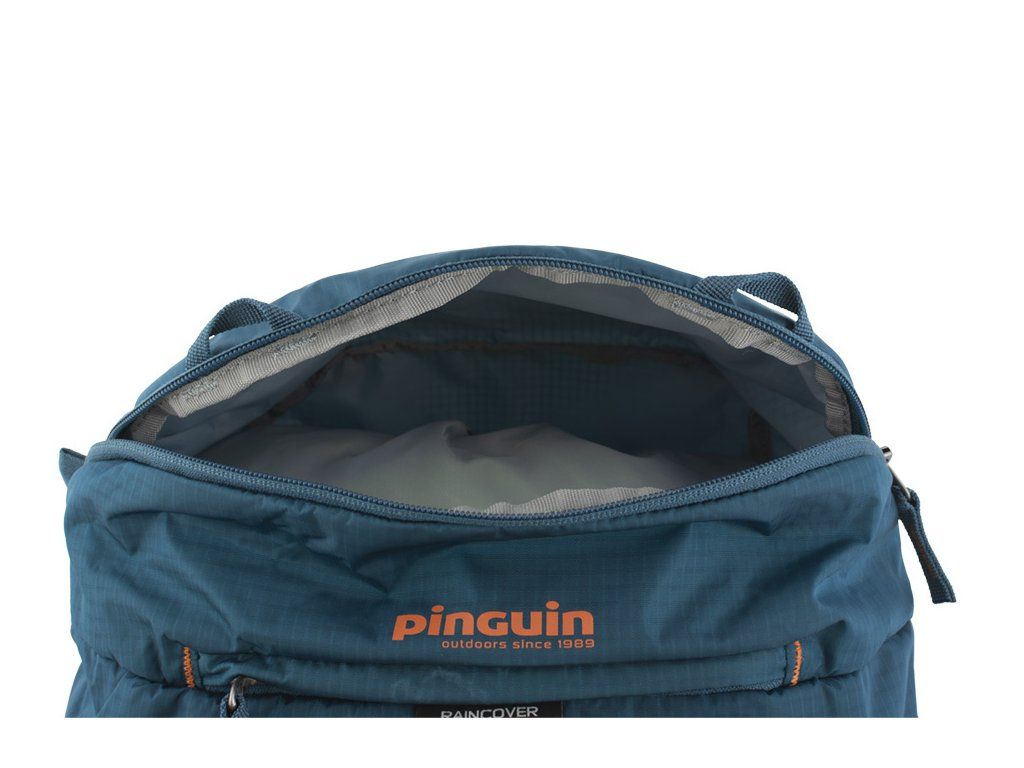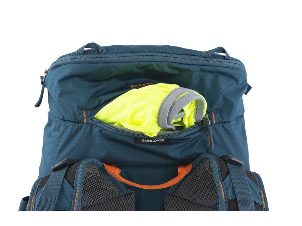 - Výrazná pláštěnka v samostatné zipové kapse na víku batohu.