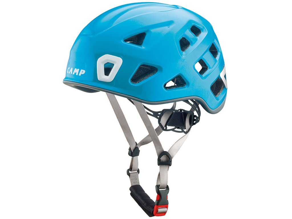 Storm je špičková helma, která poskytuje výjimečnou ochranu a je dostatečně pohodlná na to, aby ji bylo možné nosit celý den za jakýchkoli podmínek a při jakémkoli druhu lezení. 22 aerodynamických větracích otvorů udržuje hlavu v chladu při lezení na vícedélkových cestách a za teplého počasí. Dvě velikosti byly optimalizovány pro velmi širokou škálu velikostí a systém popruhů a otočného kolečka drží helmu nízko na hlavě, aby zůstala na svém místě i při dynamických pohybech.