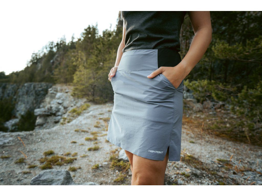 Univerzální lehká sukně Play vyvinutá pro aktivní ženy kombinuje přiléhavé kraťasy se sportovní sukní. Strečové šortky výborně přiléhají, a tím snižují nepříjemné tření i při dlouhých outdoorových aktivitách. Funkční materiál sukně dobře odvádí vlhkost a je velmi příjemný na dotek. Sukně se vyznačuje širokým pasem se strečovými díly, čímž poskytuje pohodlné a přiléhavé držení, které je ještě možné upravit pomocí vnitřní šňůrky. Dvě boční kapsy nabízejí prostor na gely, lahve a energetické tyčinky. Zažijte nový stupeň pohodlí a stylu při každém aktivním pohybu.