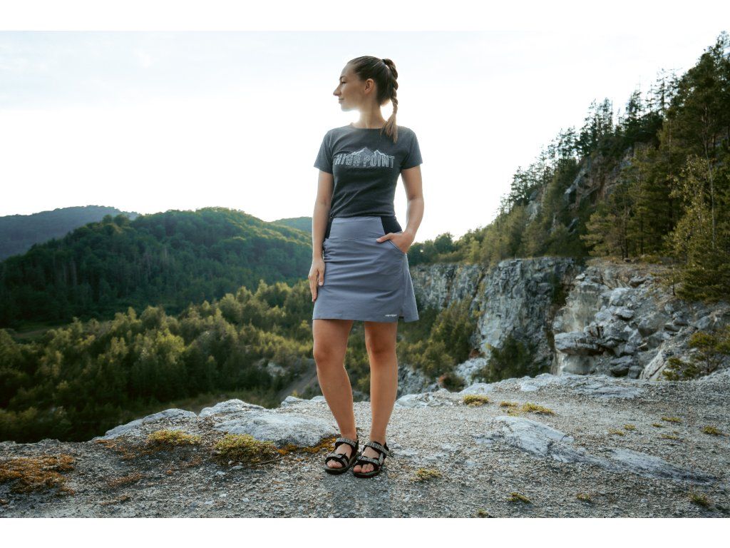 Univerzální lehká sukně Play vyvinutá pro aktivní ženy kombinuje přiléhavé kraťasy se sportovní sukní. Strečové šortky výborně přiléhají, a tím snižují nepříjemné tření i při dlouhých outdoorových aktivitách. Funkční materiál sukně dobře odvádí vlhkost a je velmi příjemný na dotek. Sukně se vyznačuje širokým pasem se strečovými díly, čímž poskytuje pohodlné a přiléhavé držení, které je ještě možné upravit pomocí vnitřní šňůrky. Dvě boční kapsy nabízejí prostor na gely, lahve a energetické tyčinky. Zažijte nový stupeň pohodlí a stylu při každém aktivním pohybu.
