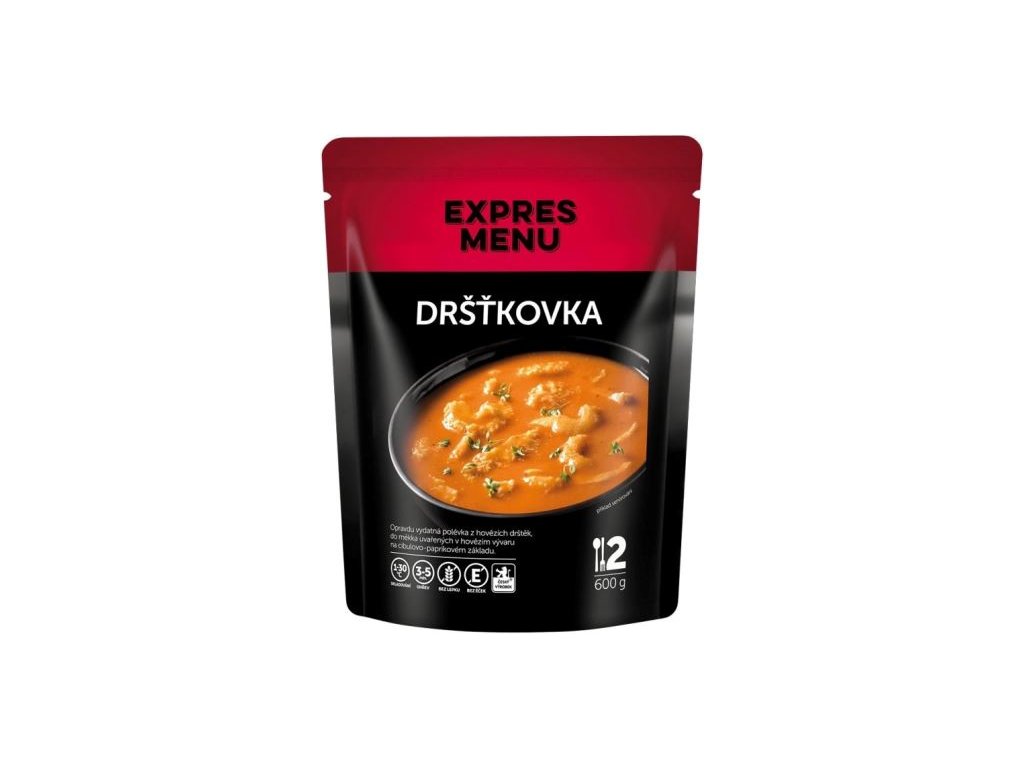 Opravdu vydatná polévka z hovězích drštěk, doměkka uvařených v hovězím vývaru na cibulovo-paprikovém základu.