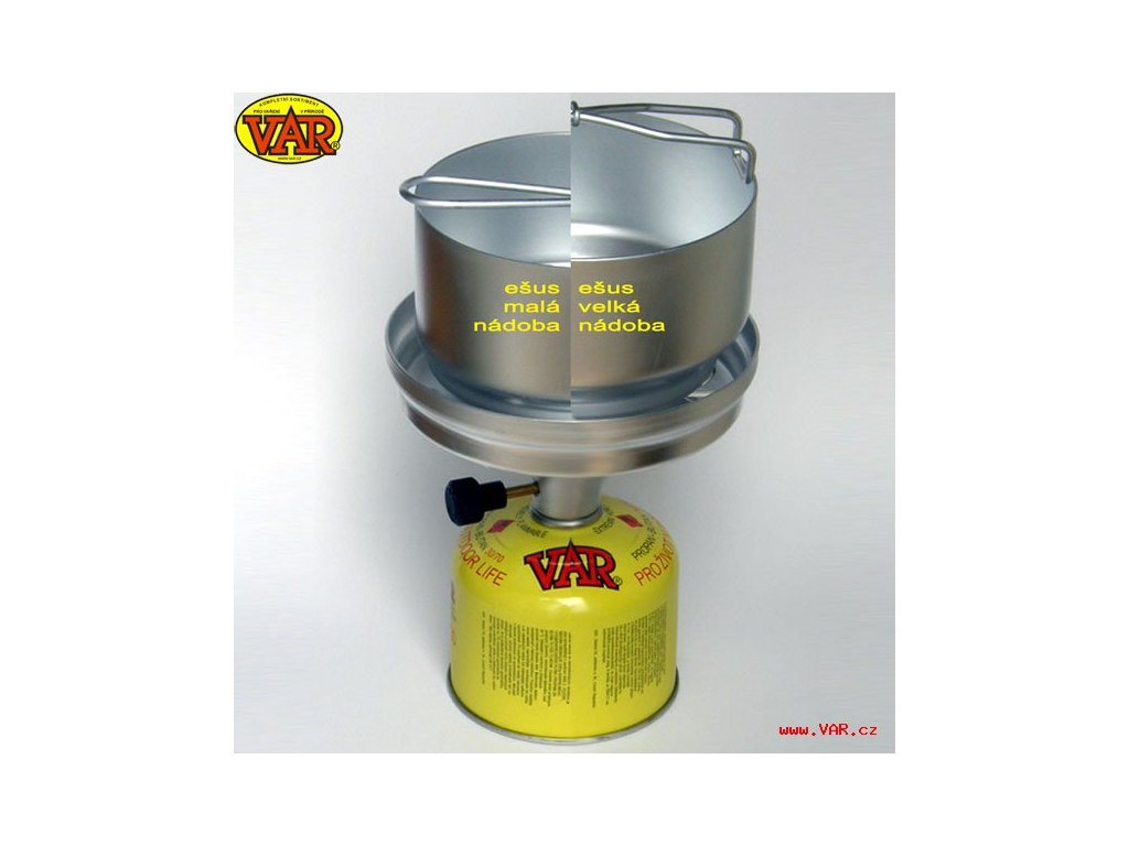 Důležitým doplňkem vařiče VAR je Závětří plamene V 2 .Je mimořádně účinné a má vysoký reflexní efekt. Svým provedením zajišťuje vysoce účinnou ochranu plamene proti poryvům větru. Dále se projevuje značným reflexním účinkem, tj. že veškeré teplo spalných plynů se odráží pod varnou nádobu, čímž se snižuje doba vaření asi o 25%, stejně tak spotřeba plynu.